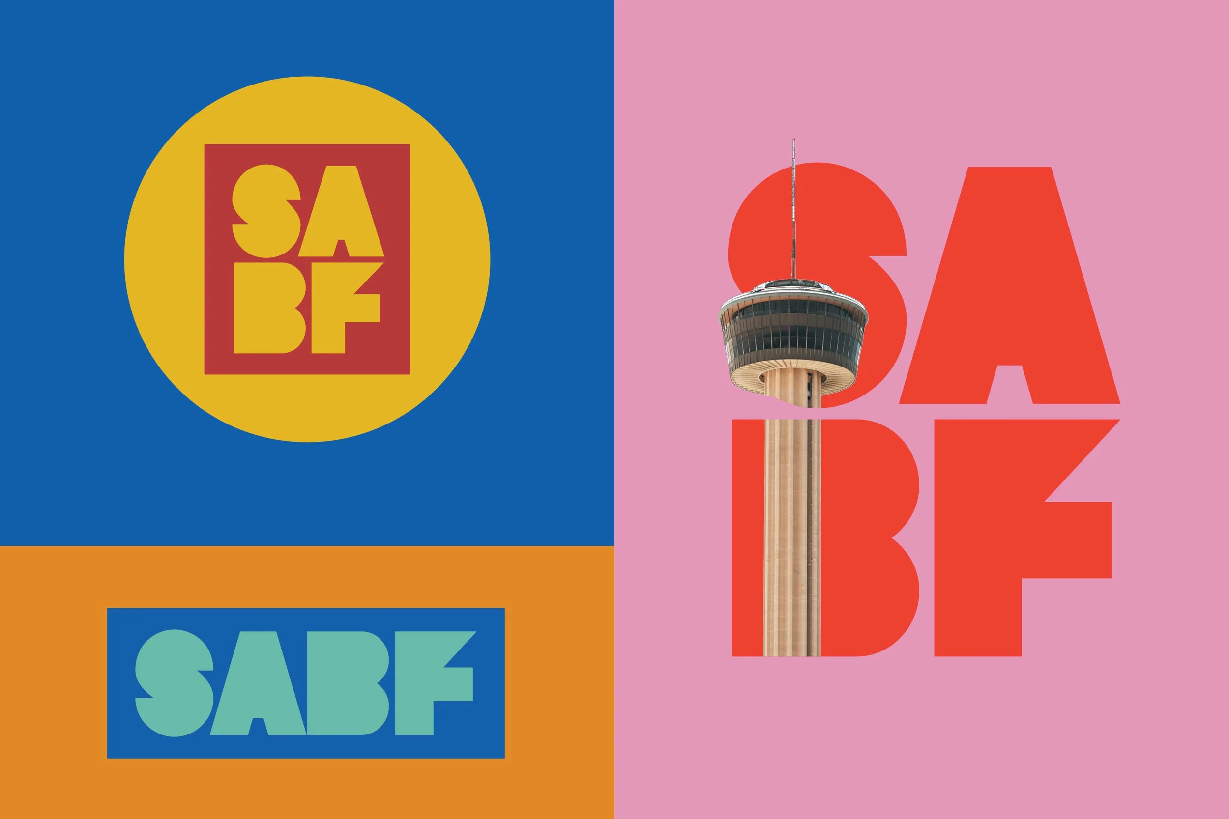 The San Antonio Book Festival (SABF) is an annual all-day event that features over 110 national, regional, local and emerging authors and welcomes more than 20,000 visitors annually. It was important to the client that the new identity not use cliché San Antonio symbolism, such as an Alamo or a rose window. A type-based solution was the way to go! Inspired by research of Mexican art and history, the final wordmark features the acronym SABF set in a 30s-era geometric font and contained in a square. The main colors, red and yellow, are inspired by the San Antonio Central Library, where the festival takes place every year. Other colors in the palette were informed by the colors and vibrancy of the city.